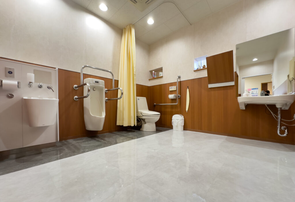 車椅子の方、胃瘻などの患者様にもご利用頂ける設備のトイレがございます。ご利用にお困りの方は近くのスタッフにお声がけください。